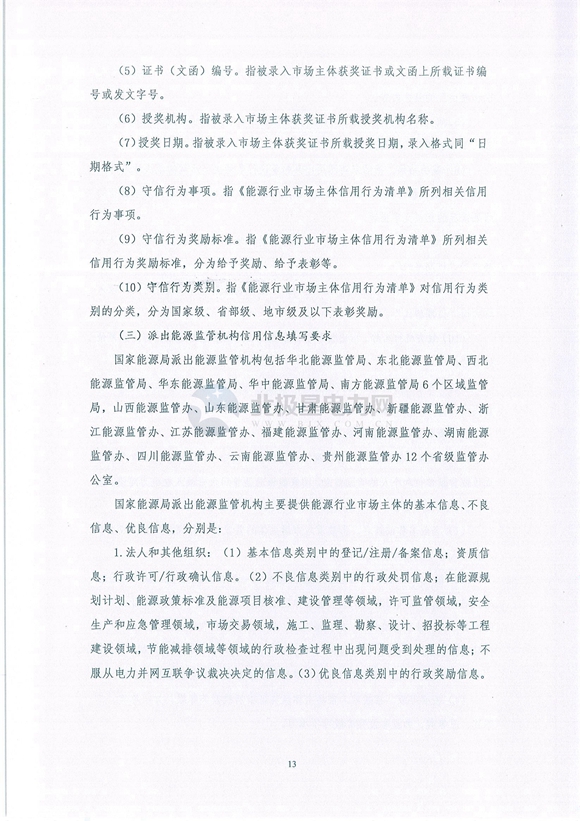 國家能源局綜合司關(guān)于印發(fā)《能源行業(yè)市場主體信用數(shù)據(jù)清單(2018版)的通知》