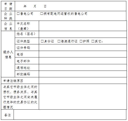 第二十七條售電公司自愿申請退出市場時,應(yīng)向電力交易中心提交以下注銷申請相關(guān)資料: