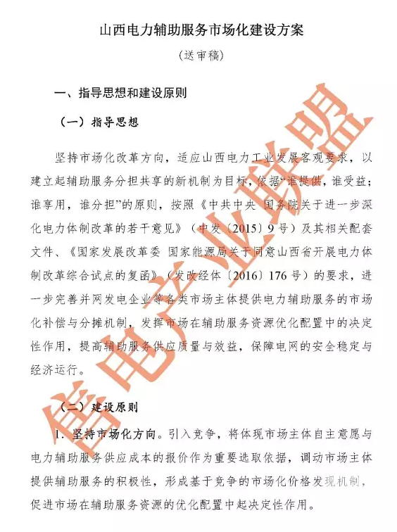 山西電力輔助服務(wù)市場(chǎng)化建設(shè)方案(送審稿)