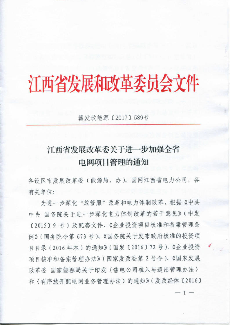 近日,江西省發(fā)改委發(fā)布《關(guān)于進(jìn)一步加強(qiáng)全省電網(wǎng)項目管理的通知》,通知中強(qiáng)調(diào),要有序放開配電網(wǎng)業(yè)務(wù),鼓勵社會資本投資、建設(shè)、運(yùn)營增量配電網(wǎng)(原則上指110千伏及以下電壓等級電網(wǎng)和220千伏及以下電壓等級工