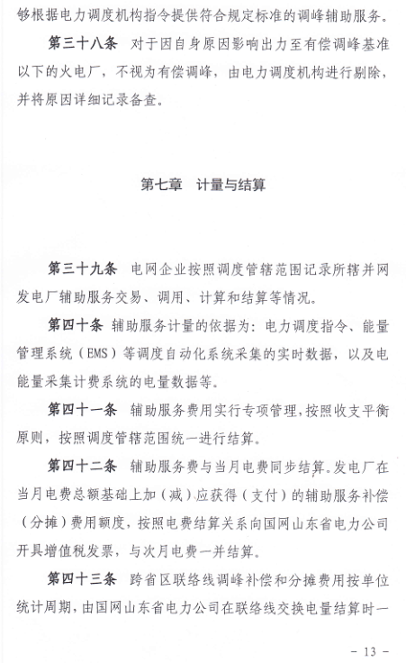《山東電力輔助服務(wù)市場運營規(guī)則(試行)》印發(fā)