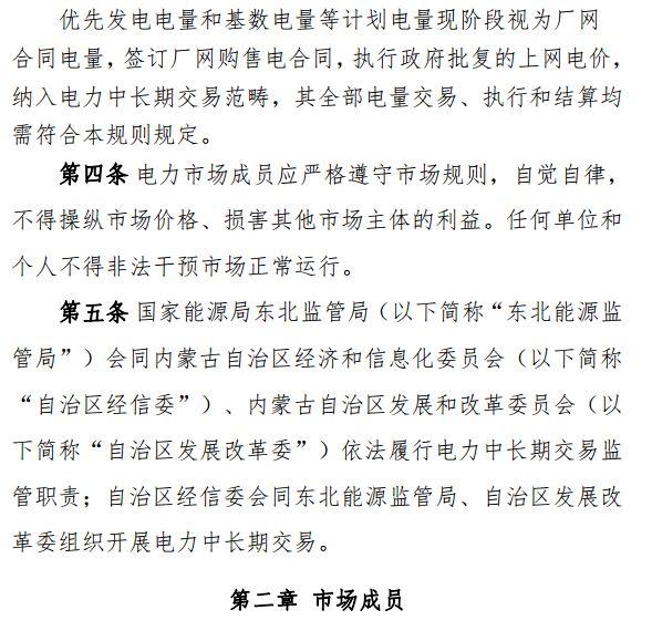 《內蒙古東部地區(qū)電力中長期交易規(guī)則(暫行)》