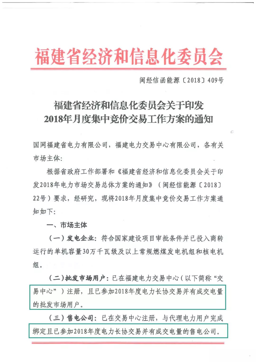 5月20日,福建經(jīng)信委印發(fā)《2018年月度集中競(jìng)價(jià)交易工作方案》。已參加2018年度電力長(zhǎng)協(xié)交易并有成交電量的批發(fā)市場(chǎng)用戶(hù)、售電公司可以參與