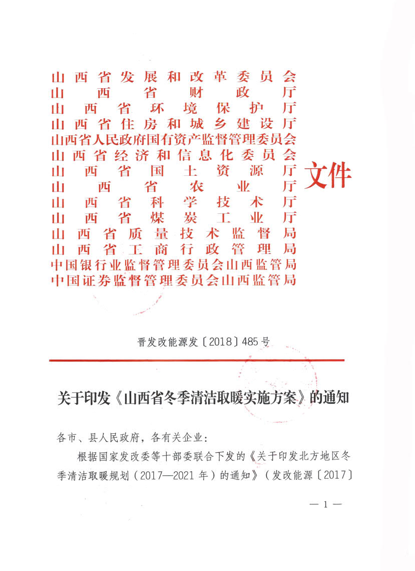 山西省發(fā)改委聯(lián)合山西省財(cái)政廳、山西省環(huán)保廳等十四部門聯(lián)合印發(fā)《山西省冬季清潔取暖實(shí)施方案》,方案中稱,到2021年,山西省清潔燃煤集中