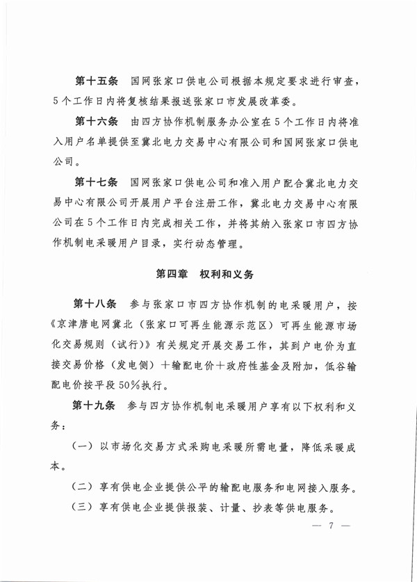關(guān)于印發(fā)《張家口市參與四方協(xié)作機(jī)制電采暖用戶準(zhǔn)入與退出管理規(guī)定(試行)》、