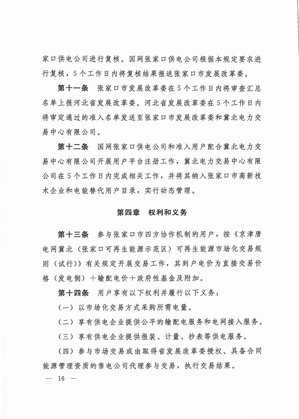 《張家口市參與四方協(xié)作機(jī)制高新技術(shù)企業(yè)和電能替代用戶準(zhǔn)入與退出管理規(guī)定(試行)》的通知