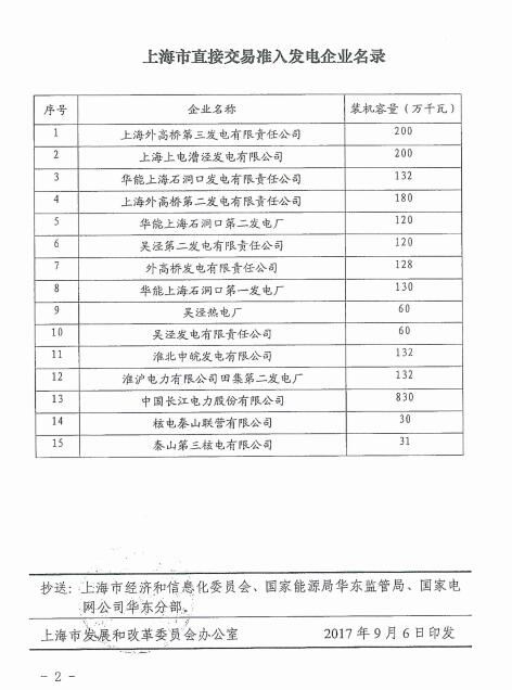 上海15家企業(yè)納入直接交易準入發(fā)電企業(yè)名單