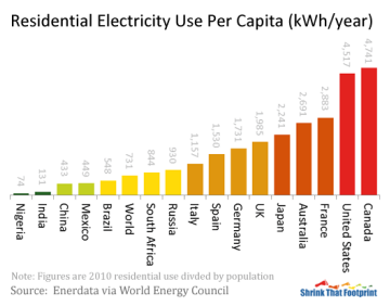 如果算人均用電量,那么我們差距更遠(yuǎn):只有美國、加拿大的十分之一。