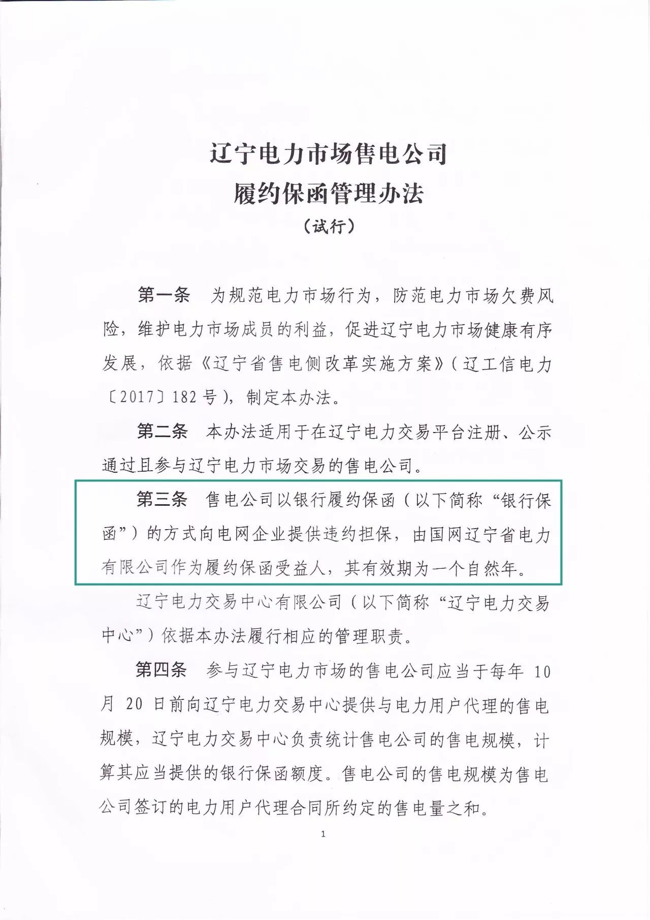 今天(11月15日),遼寧發(fā)布遼寧電力市場售電公司履約保函管理辦法,與廣東的類似,售電公司需要根據(jù)預(yù)計(jì)年售電規(guī)模繳納相應(yīng)的銀行履約保函,不過這個(gè)保函向電網(wǎng)企業(yè)提供違約擔(dān)保,由國網(wǎng)遼寧省電力有限公司作為履約保函受益人。
