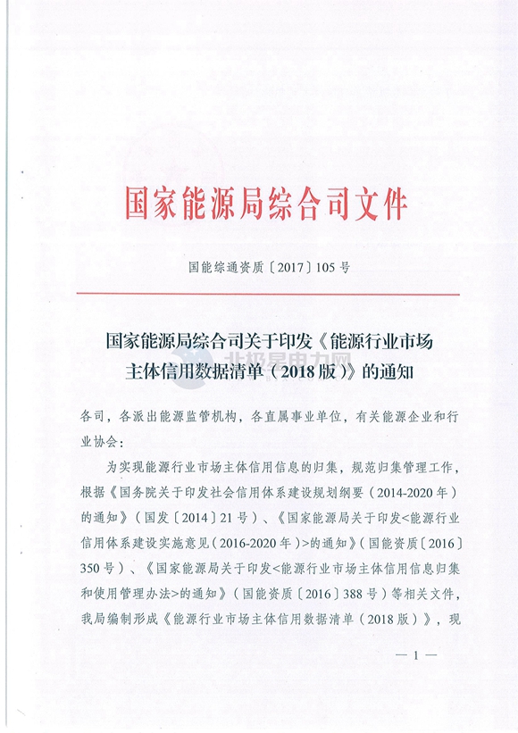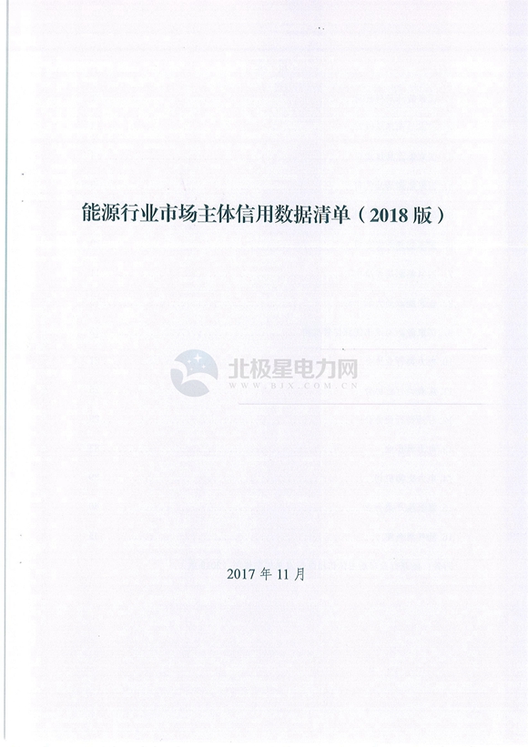 國家能源局綜合司關(guān)于印發(fā)《能源行業(yè)市場主體信用數(shù)據(jù)清單(2018版)的通知》