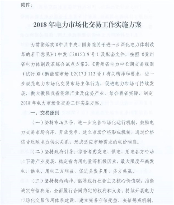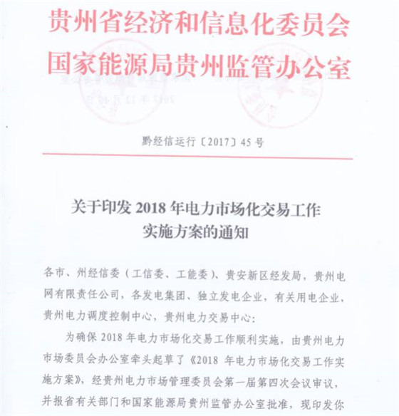 貴州省經(jīng)信委、國(guó)家能源局貴州監(jiān)管辦日前聯(lián)合發(fā)布了《關(guān)于印發(fā)2018年度電力市場(chǎng)化交易工作實(shí)施方案》。