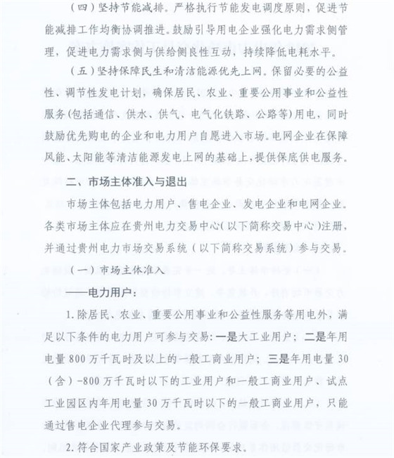 貴州省經(jīng)信委、國(guó)家能源局貴州監(jiān)管辦日前聯(lián)合發(fā)布了《關(guān)于印發(fā)2018年度電力市場(chǎng)化交易工作實(shí)施方案》。電力用戶的準(zhǔn)入:大工業(yè)用戶、年用電量800萬千瓦時(shí)及以上的一般工商業(yè)用戶、年用電量30(含)-800萬千瓦時(shí)的