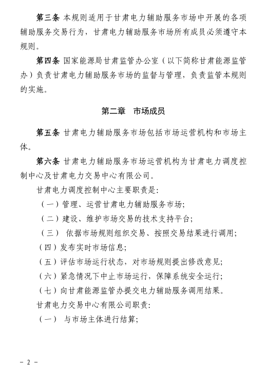 近日,國家能源局甘肅監(jiān)管辦發(fā)布了《甘肅省電力輔助服務市場運營規(guī)則(試行)》通知。