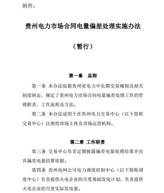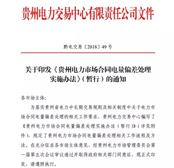 貴州電力市場合同電量偏差處理實施辦法(暫行)發(fā)布:超出偏差范圍按少用電量合同加權價5%支付費用