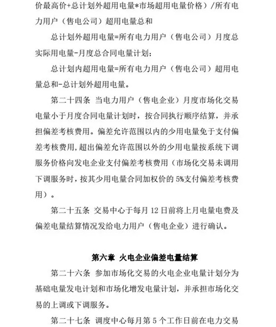 貴州電力交易中心日前發(fā)布了《關于印發(fā)貴州電力市場合同電量偏差處理實施辦法(暫行)》,發(fā)電企業(yè)和電力用戶(售電企業(yè))的合同偏差分開按月清算、結(jié)賬。當電力用戶(售電企業(yè))月度市場化交易電量小于月度合同電量計劃時,按合同執(zhí)行順序結(jié)算,并承擔偏差考核費用。偏差允許范圍以內(nèi)的少用電量免于支付偏差考核費用,超出偏差允許范圍以內(nèi)的少用電量按系統(tǒng)下調(diào)服務價格向發(fā)電企業(yè)支付偏差考核費用下調(diào)服務時,按其少用電量合同加權價的5%支付偏差考核費用。