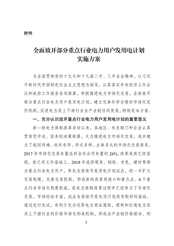 附件:全面放開部分重點行業(yè)電力用戶發(fā)用電計劃實施方案