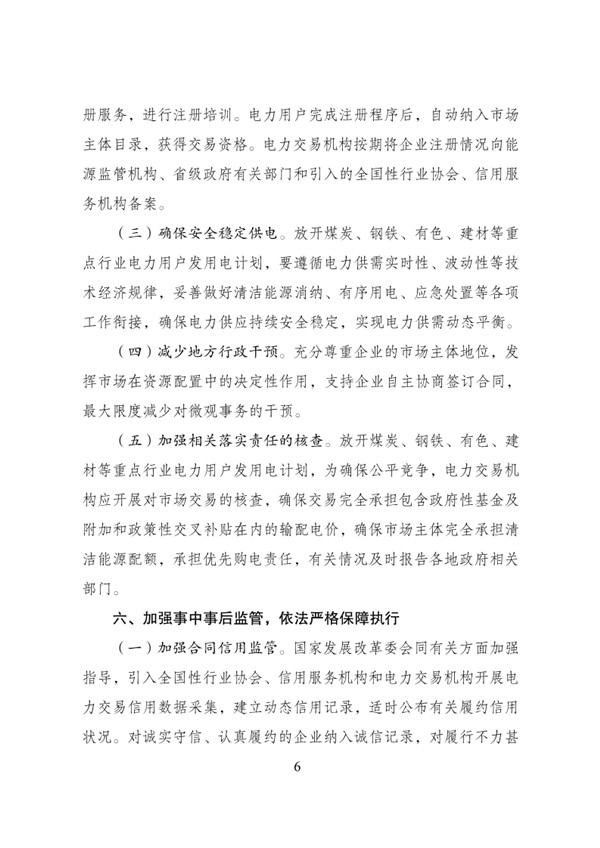(七)各地可以結(jié)合實際情況,自行確定用戶電壓等級及用電量限制,擴大放開的范圍,新增大工業(yè)用戶原則上通過參與交易保障供電。參與市場交易的電力用戶,其單位能耗、環(huán)保排放應(yīng)達到標準。