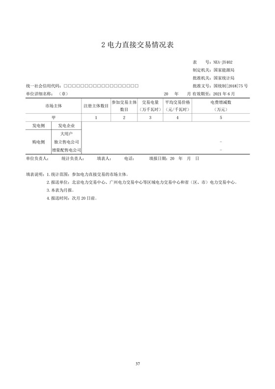 主要修訂內(nèi)容包括:一是新增1類報(bào)送主體和2張報(bào)表,將北京電力交易中心、廣州電力交易中心等區(qū)域電力交易中心和省(區(qū)、市)電力交易中心新增為報(bào)送主體,并增加“電力交易情況匯總表”和“電力直接交易情況表”兩張報(bào)表。二是對部分報(bào)表指標(biāo)進(jìn)行了調(diào)整,刪除指標(biāo)20個(gè),修改調(diào)整指標(biāo)6個(gè),增加指標(biāo)6個(gè),增加指標(biāo)解釋和填報(bào)說明5項(xiàng)。三是對部分報(bào)表的報(bào)表期別、報(bào)送日期以及上市公司上報(bào)截止時(shí)間進(jìn)行了調(diào)整。