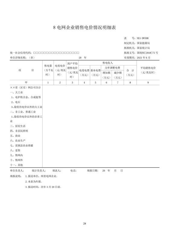 啟用時(shí)間及有效期:自2018年7月1日開始,執(zhí)行2018版《電力監(jiān)管統(tǒng)計(jì)調(diào)查制度》,有效期3年。