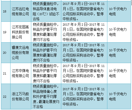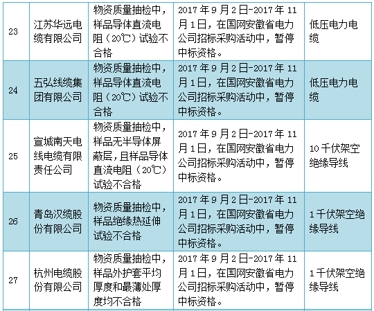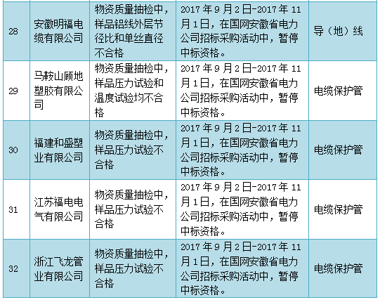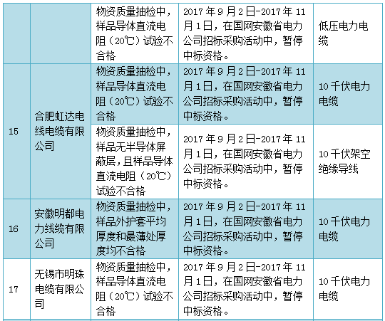 國(guó)網(wǎng)(安徽)通報(bào)的供應(yīng)商不良行為處理情況(2017.9)