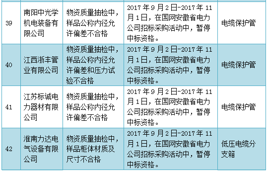 國網(wǎng)(安徽)通報的供應(yīng)商不良行為處理情況(2017.9)