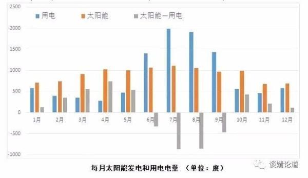 經(jīng)過(guò)計(jì)算,跟電網(wǎng)說(shuō)再見(jiàn)之后,太陽(yáng)能發(fā)電和居民用電的不匹配就必須完全由電池來(lái)平衡。如下圖所示,相比居民用電明顯的季節(jié)效應(yīng)(夏季四個(gè)月用電量占全年用電量的65%),太陽(yáng)能發(fā)電的季節(jié)效應(yīng)十分微弱,這意味著需要極大容量的年循環(huán)版電池來(lái)進(jìn)行長(zhǎng)期的電力電量平衡。這個(gè)結(jié)果也否定了業(yè)界原本很流行的一個(gè)假設(shè):“太陽(yáng)能+電池”脫網(wǎng)供電系統(tǒng)的瓶頸在遇到多個(gè)連續(xù)的陰雨天。