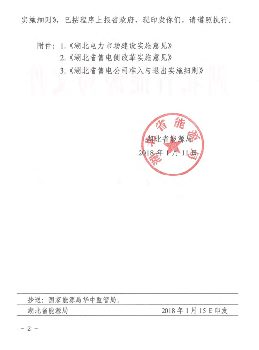 湖北省能源局日前印發(fā)了《湖北電力市場建設(shè)實施意見》、《湖北省售電側(cè)改革實施意見》、《湖北省售電公司準(zhǔn)入與退出實施細(xì)則》。