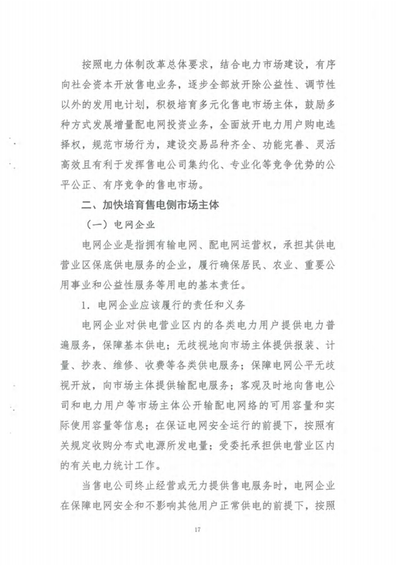 在湖北省售電側(cè)改革實施意見中提到,有序向社會資本開放售電業(yè)務(wù),逐步全部放開除公益性、調(diào)節(jié)性以外的發(fā)用電計劃,積極培育多元化售電市場主體,鼓勵多種方式發(fā)展增量配電網(wǎng)投資業(yè)務(wù),全面放開電力用戶購電選擇權(quán)。