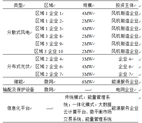 Tab. 2 Equipment scale and investment subjects of microgrid