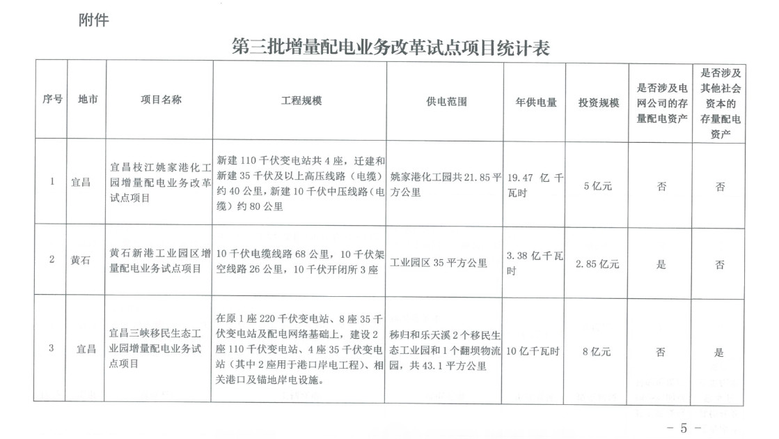 湖北省上報5個第三批增量配電業(yè)務改革試點項目,至此,湖北省共有11個增量配電業(yè)務改革試點項目。