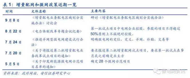 我們注意到在近期,增量配網和微網在政策和各地落實上都出現(xiàn)了比較積極的進展,值得跟蹤關注。