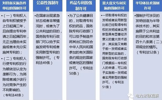觀茶君腦洞大開之際,對我國專利“強(qiáng)制許可”制度的適用情形、范圍、程序進(jìn)行了研究,以探討“強(qiáng)制許可“這一制度理念在增量配電改革中對電網(wǎng)企業(yè)存量資產(chǎn)處理上的適用借鑒性。