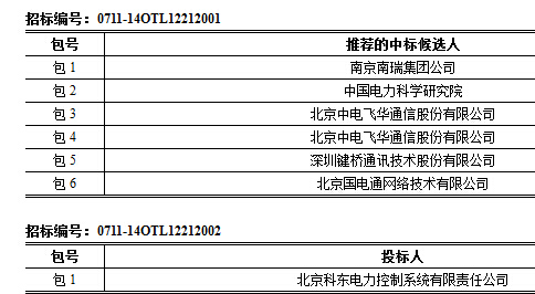 國網(wǎng)信息化2014年第四批(調(diào)度集成、調(diào)度硬件)中標(biāo)名單