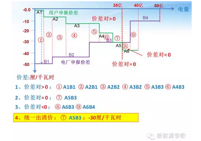 最后一個成交的購電方與售電方申報價差的算術(shù)平均值為統(tǒng)一出清價差。