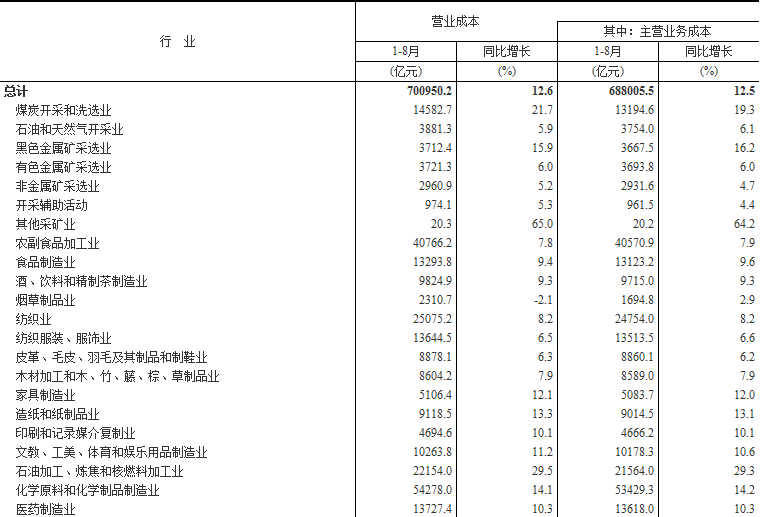 在各表的利潤(rùn)總額同比增長(zhǎng)欄中,標(biāo)“注”的表示上年同期利潤(rùn)總額為負(fù)數(shù),即虧損;數(shù)值為正數(shù)的表明利潤(rùn)同比增長(zhǎng);數(shù)值在0至-100%之間(不含0)的表明利潤(rùn)同比下降;下降幅度超過(guò)100%的表明由上年同期盈利轉(zhuǎn)為本期虧損;數(shù)值為0的表明利潤(rùn)同比持平。