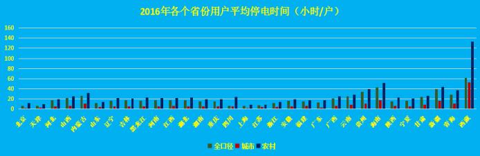 分區(qū)域看,2016年,我國華東區(qū)域供電可靠性最高,供電可靠率達(dá)到99.880%,用戶平均停電次數(shù)為2.47次/戶,用戶平均停電時間為10.55小時/戶。西北地區(qū)供電可靠性最低,供電可靠率為99.687%,用戶平均停電次數(shù)為6.24次/戶,用戶平均停電時間為27.54小時/戶。