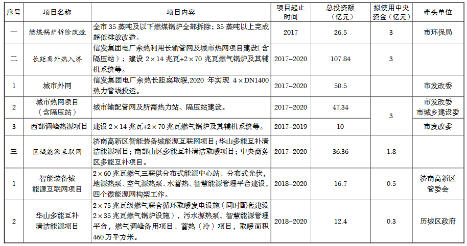 濟(jì)南市冬季清潔取暖試點(diǎn)重點(diǎn)項(xiàng)目表