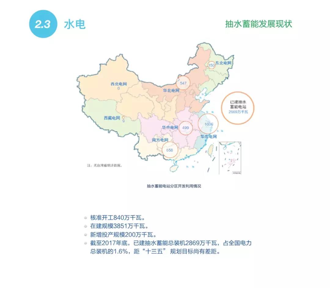到2017年底,中國的常規(guī)水電總裝機容量達(dá)到3.6億千瓦,其中在建規(guī)模5100萬千瓦。抽水蓄能在建規(guī)模為3851萬千瓦,已建總裝機容量為2869萬千瓦。