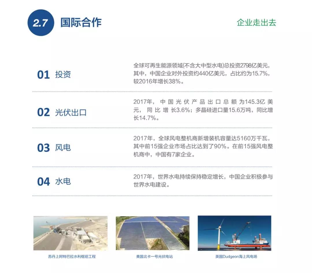 國際合作方面,去年國家能源局推動了20余項多邊機制下可再生能源的領(lǐng)域交流互動,同時與40多個國家和地方政府簽署涵蓋可再生能源技術(shù)、能源效率、智能電網(wǎng)、電源開發(fā)等方面的雙邊合作協(xié)議。