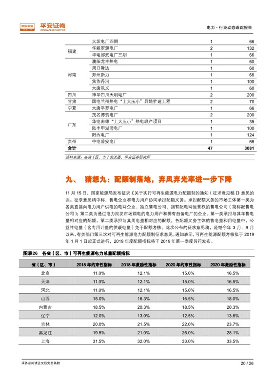 猜想九:配額制落地,棄風(fēng)棄光率進(jìn)一步下降。可再生能源電力配額制三次征求意見,可能在2019年1月1日起正式落地執(zhí)行考核,有望進(jìn)一步增強(qiáng)市場主體對風(fēng)電、光伏的消納意愿,降低棄風(fēng)棄光率。