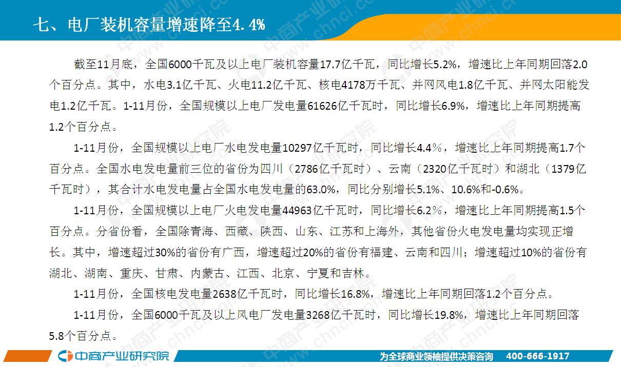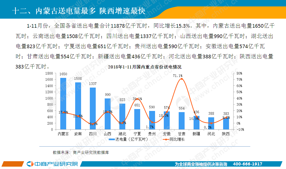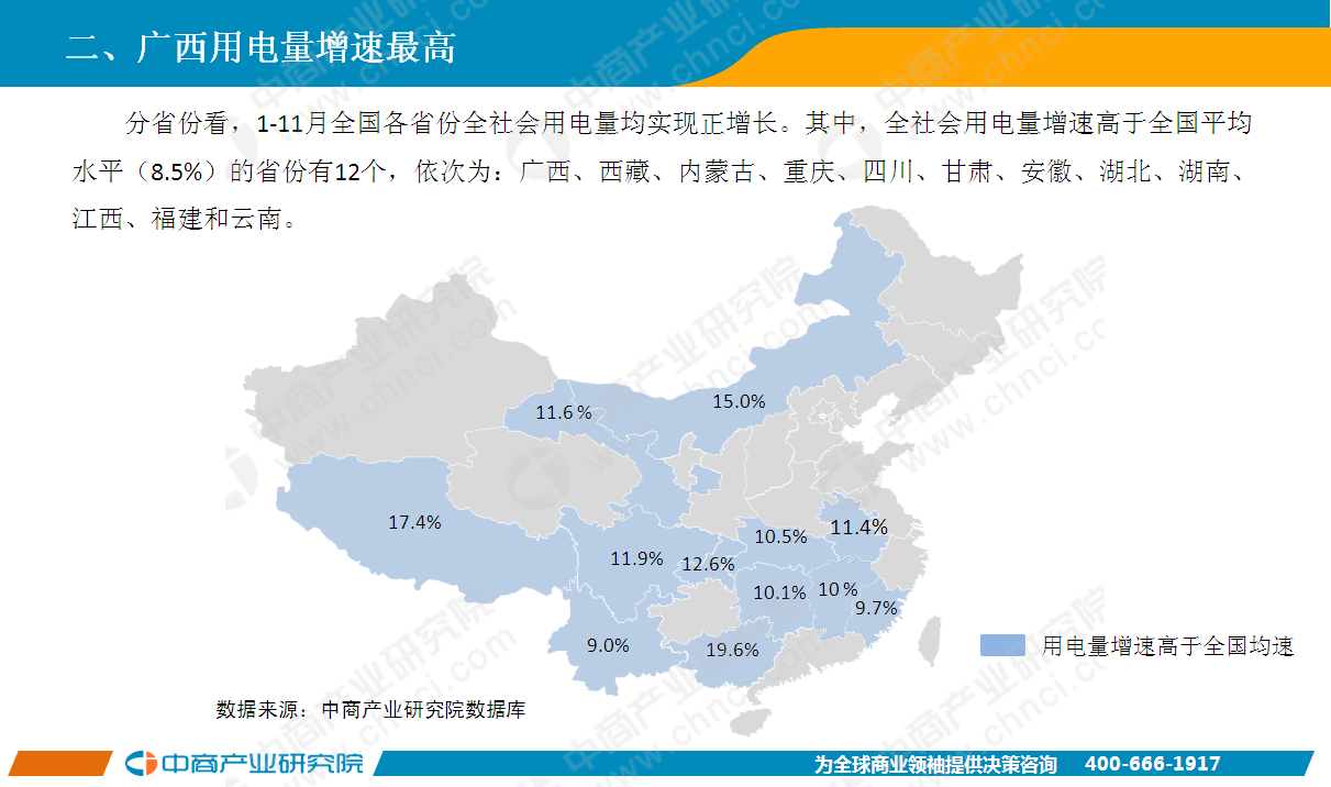 2018年11月全國(guó)全社會(huì)用電量5647億千瓦時(shí),同比增長(zhǎng)6 3%。1-11月全國(guó)全社會(huì)用電量62199億千瓦時(shí),同比增長(zhǎng)8 5%,增速比上年同期提高2 0個(gè)百分點(diǎn)。