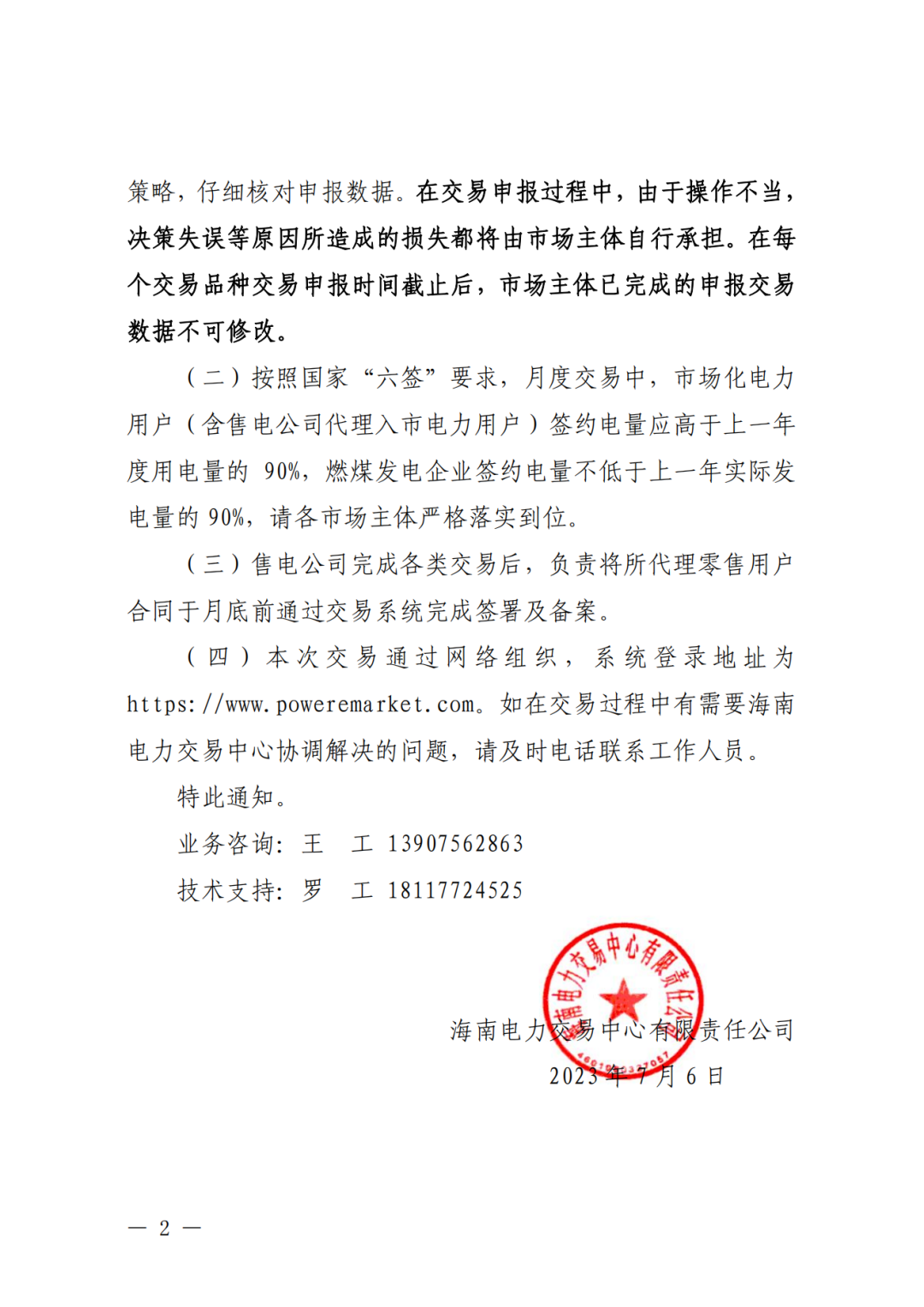 海南2023年7月市場化交易時間安排