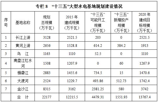 水電發(fā)展“十三五”規(guī)劃(2016-2020年)