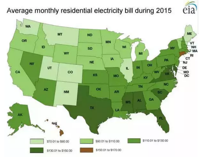 美國(guó)電價(jià)市場(chǎng)化,每度電也不是一個(gè)價(jià),不同電力公司收費(fèi)方式不同,同一個(gè)電力公司也有不同的計(jì)劃。