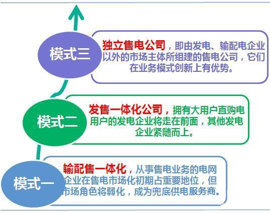 中 國的電力產(chǎn)業(yè)市場跟國外有所不同,國外的售電業(yè)務百分之五十以上由發(fā)輸配售一體化公司所承擔,獨立售電公司占一部分比重(其中美國的獨立售電公司發(fā)展較 好,市場份額達到百分之四十)。而中國的新電改前的售電市場,主要是發(fā)售一體化(主要呈現(xiàn)為大用戶直購電)和輸配售一體化。按照目前的電改原則,是“管住 中間、放開兩頭”,即加大對輸配企業(yè)(也就是電網(wǎng)企業(yè))的監(jiān)管,在發(fā)電和售電側(cè)引入競爭。很明顯,發(fā)輸配售一體化和輸配售一體化都是不受政策鼓勵的。那 么,接下來,根據(jù)國外的成功經(jīng)驗,中國售電側(cè)整體發(fā)展模式應該是:發(fā)售一體化、獨立售電公司及初期電網(wǎng)企業(yè)通過力量博弈而短期內(nèi)將會存在的輸配售一體化模 式。