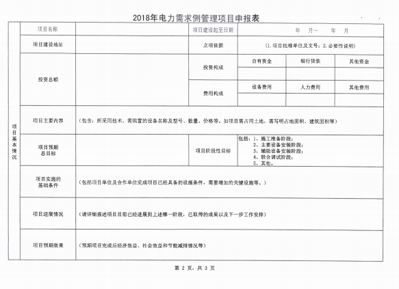 附件:2018年電力需求側(cè)管理項(xiàng)目申報(bào)表