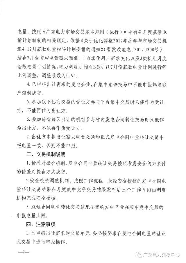 廣東7月發(fā)電合同電量轉(zhuǎn)讓交易