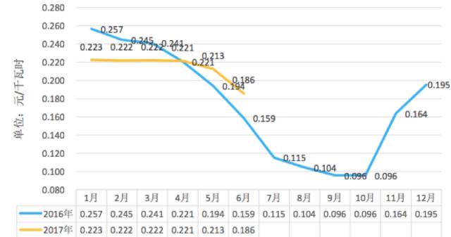 2016年、2017 年上半年云南電力市場化交易售方成交電價