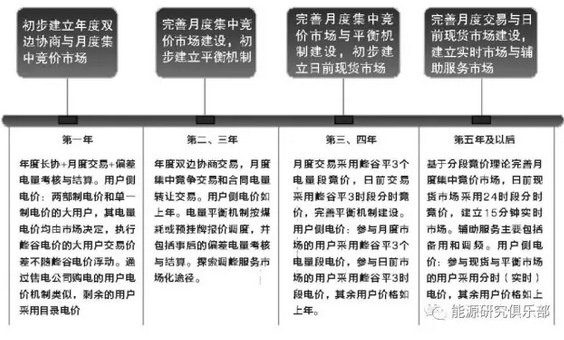 1.第一年:初步建立年度雙邊協(xié)商與月度集中競價(jià)市場,對合同偏差電量進(jìn)行事后結(jié)算和考核。