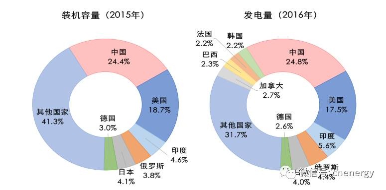 部分國家發(fā)電裝機(jī)和發(fā)電量占比情況
